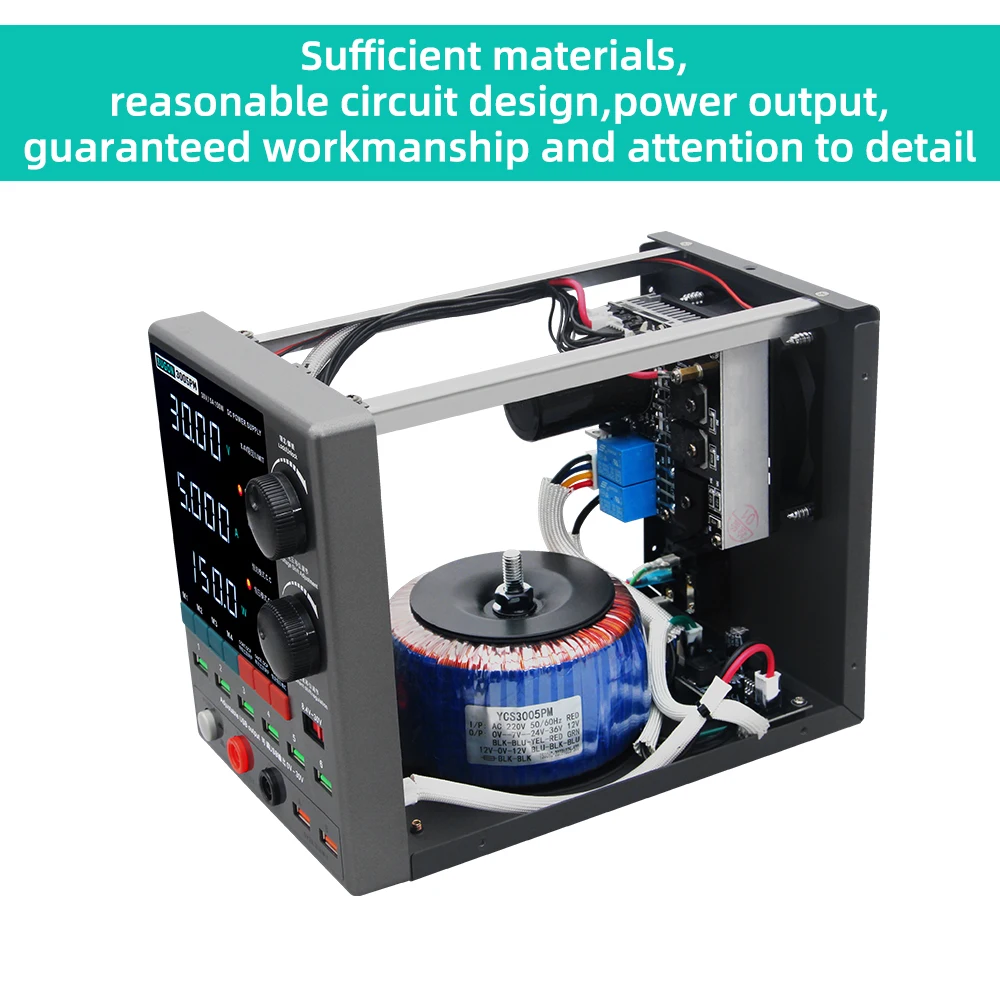 Need reliable bench power for phone repair and electronics diagnostics? The SUGON 3005PM delivers 150W of adjustable DC power with the features repair techs actually use—multiple USB ports for device charging, four memory presets for common voltages, and comprehensive protection to safeguard sensitive electronics.