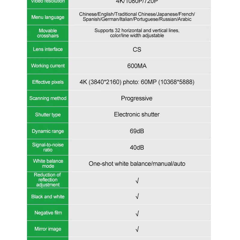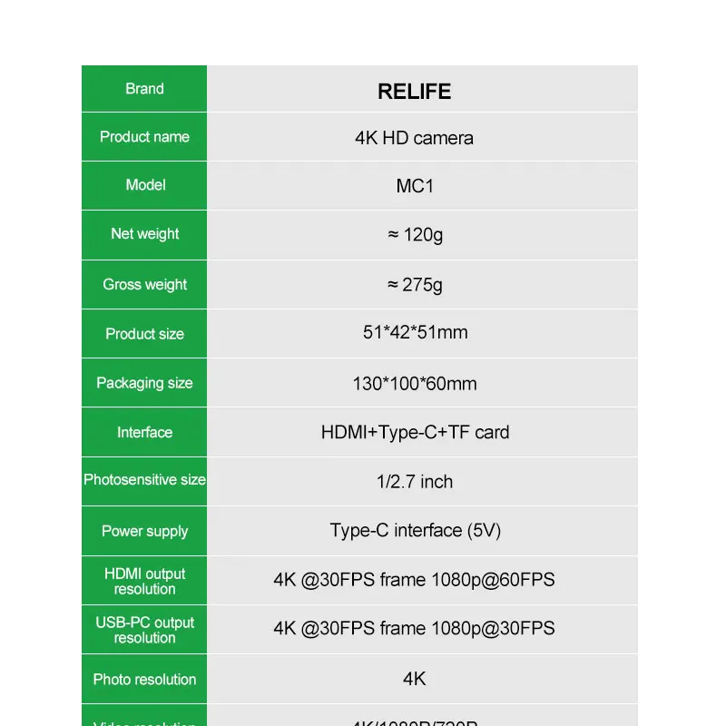 - USB-PC output: 4K@30fps or 1080p@30fps