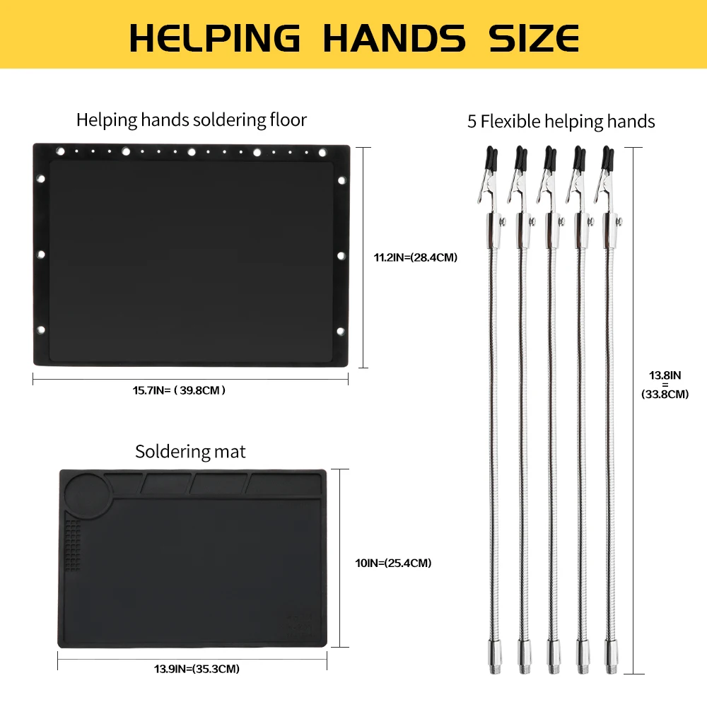 HTM Soldering Helping Hands with Heat-Resistant Silicone Mat & 5 Flexible Arms