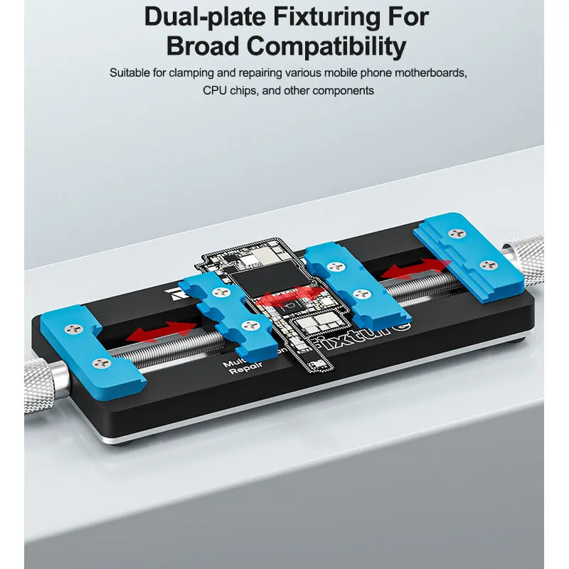 This fixture is built for mobile phone repair technicians, electronics hobbyists, and anyone doing precision work on small boards. Whether you’re reflowing the CPU on an iPhone, replacing a power management IC, or reballing a chip for a customer repair, stable positioning makes the difference between a clean job and a damaged board.