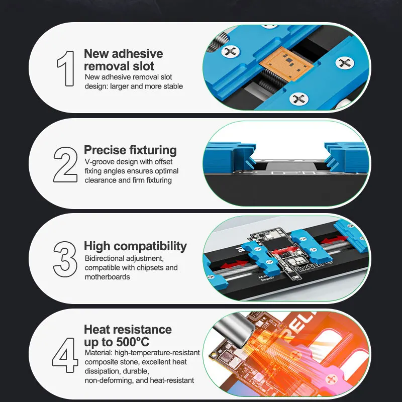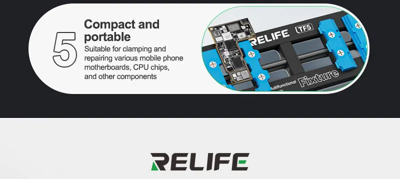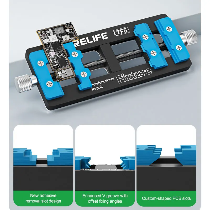 Hold your board steady while you work. Trying to desolder a chip from a wobbly motherboard leads to lifted pads, damaged components, and wasted flux. The RELIFE TF5 locks mobile phone motherboards, CPU chips, and small PCBs firmly in place so you can focus on the repair, not on keeping things from moving.