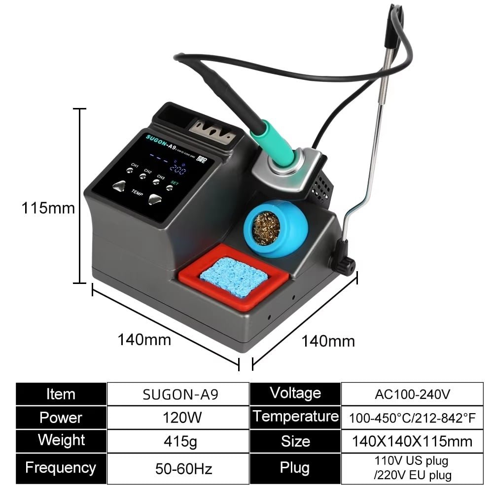 Looking for professional-grade soldering with instant heat? The SUGON A9 delivers 120W of power with JBC-compatible cartridge technology. It heats from standby to working temperature in roughly 2 seconds.